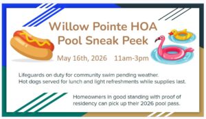 Willow Pointe Community Garage Sale, April 24-26, 2026